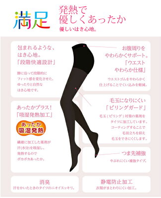 しかも静電防止加工で衣類がまとわりつきにくく、消臭糸を使用しているから、ブーツと履いても安心です! ・吸湿発熱加工であったかプラス ・やわらかセラミド加工 ・ほとんど肌が透けない80デニール ・ウエストやわらか仕様 ・マチ付き ・破れにくいつま先補強タイプ ・包まれるようなはき心地の段階快適設計 ・毛玉になりにくいピリングガード ・消臭糸使用でニオイスッキリ ・衣類がまとわりつきにくい静電気防止加工 【M-Lサイズ】 ヒップ:85-98cm 身長:150-165cm 【L-LLサイズ】 ヒップ:90-103cm 身長:155-170cm 【ゆうパケット可】 ※メーカー希望小売価格はメーカー商品タグに基づいて掲載しています。